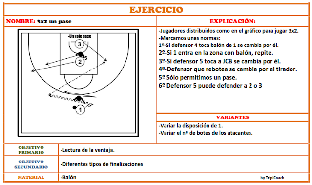 Esta situación debemos entrenarla de manera habitual para que nuestros jugadores aprendan a "ver" dónde está la ventaja, si en la finalización o en el compañero libre.